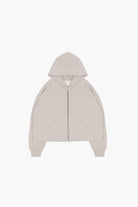 A cropped zip-up with a structured, boxy silhouette.